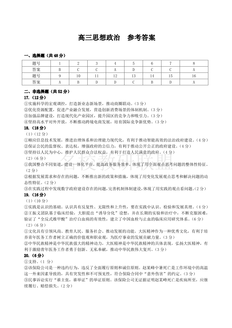 广西2025年3月高三毕业班第二次适应性考试 政治答案.pdf