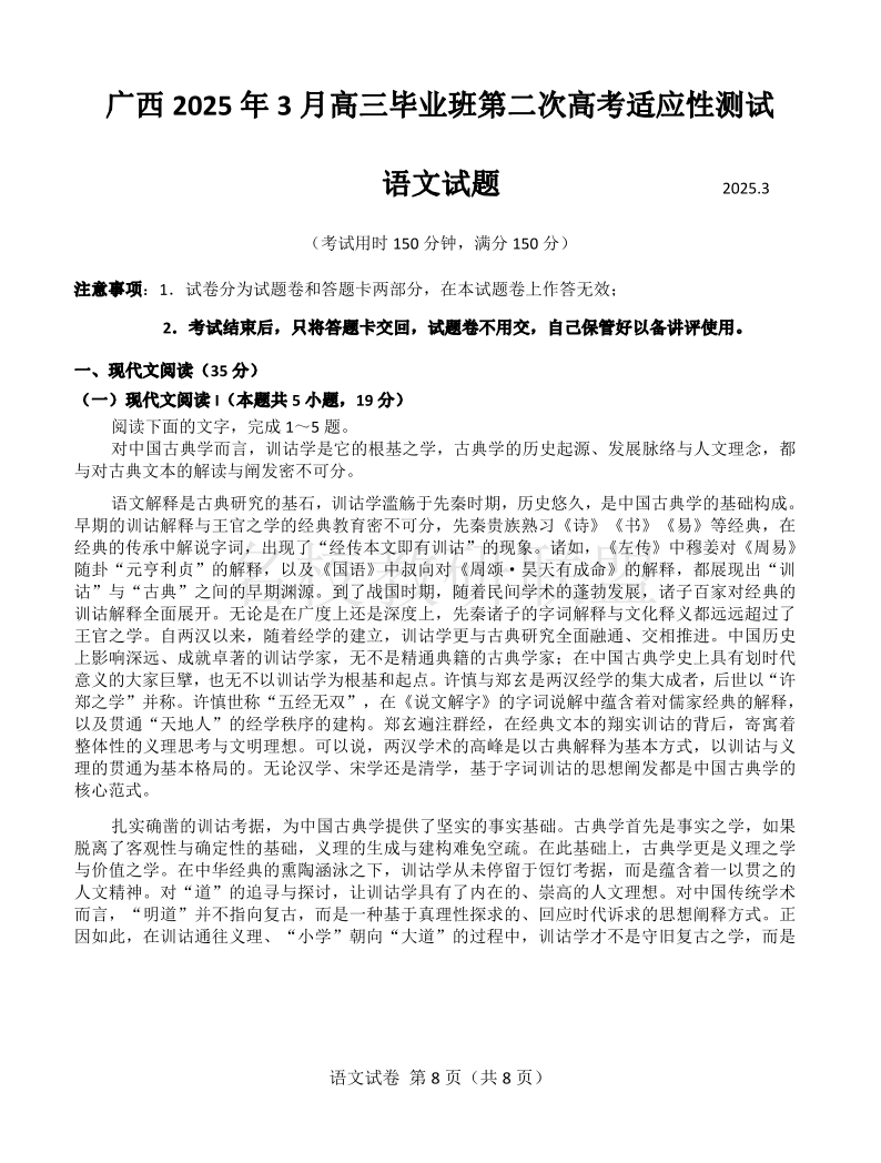 广西2025年3月高三毕业班第二次适应性考试 语文.pdf