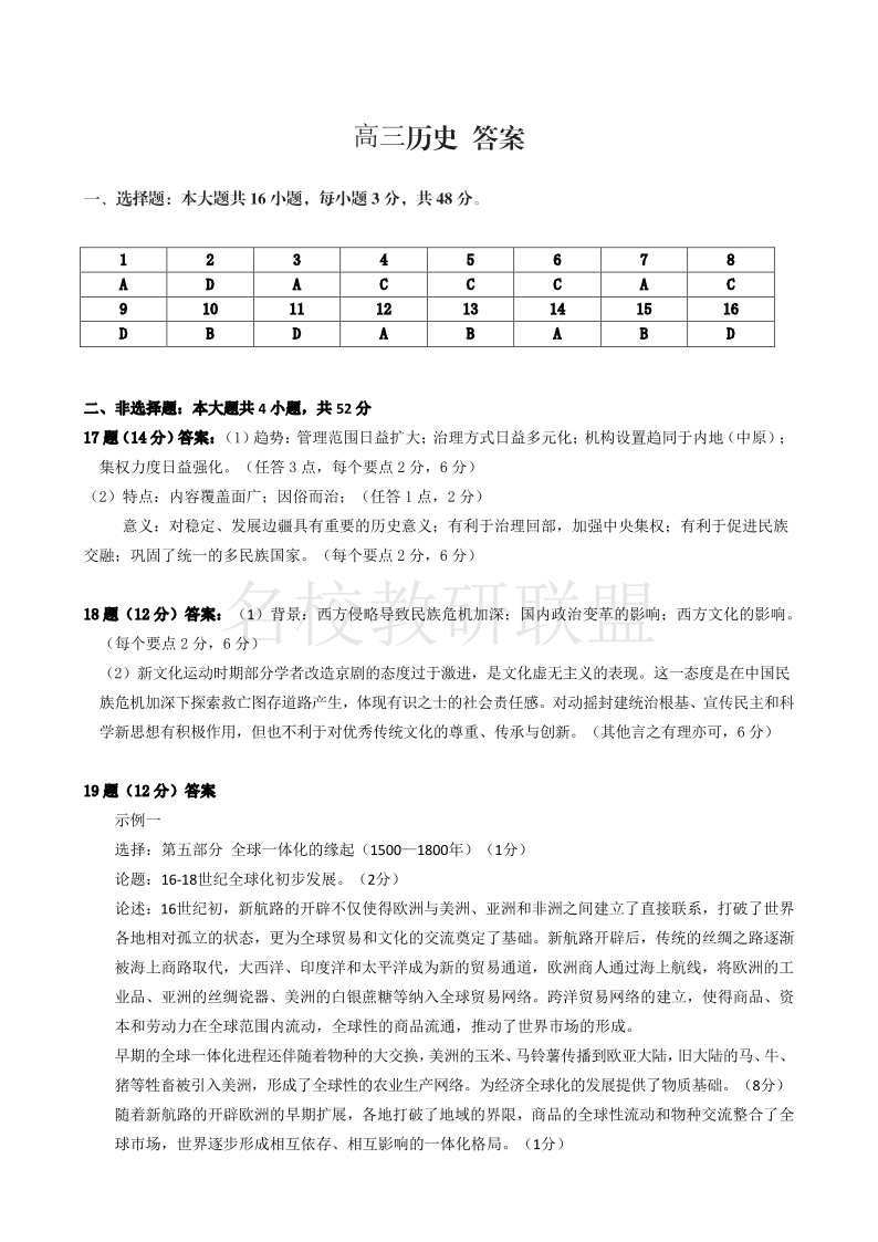 广西2025年3月高三毕业班第二次适应性考试 历史答案.pdf