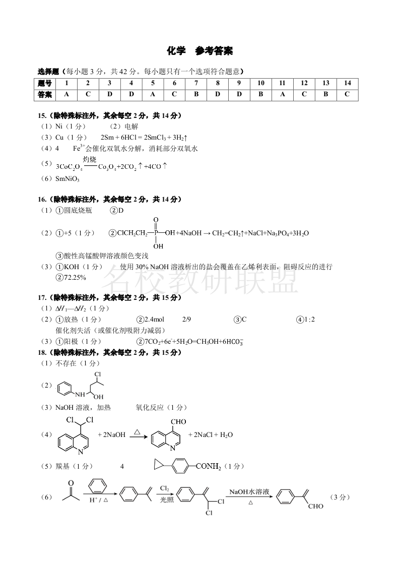 广西2025年3月高三毕业班第二次适应性考试 化学答案.pdf