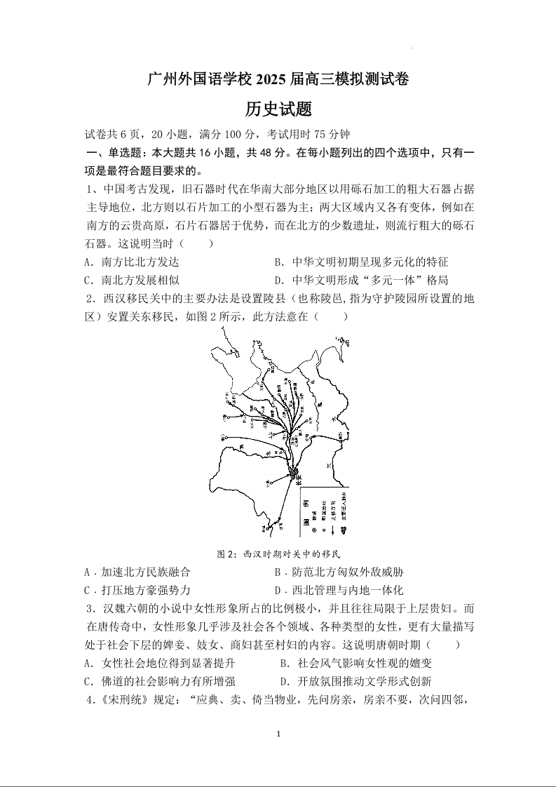 广州外国语学校2025届高三3月模拟测试卷 历史.docx
