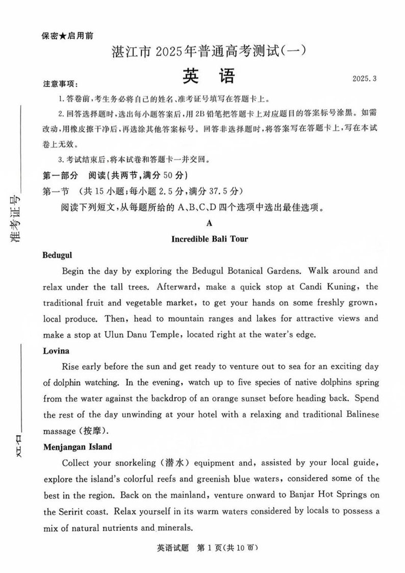 广东省湛江市2025年普通高考测试(一)英语.pdf