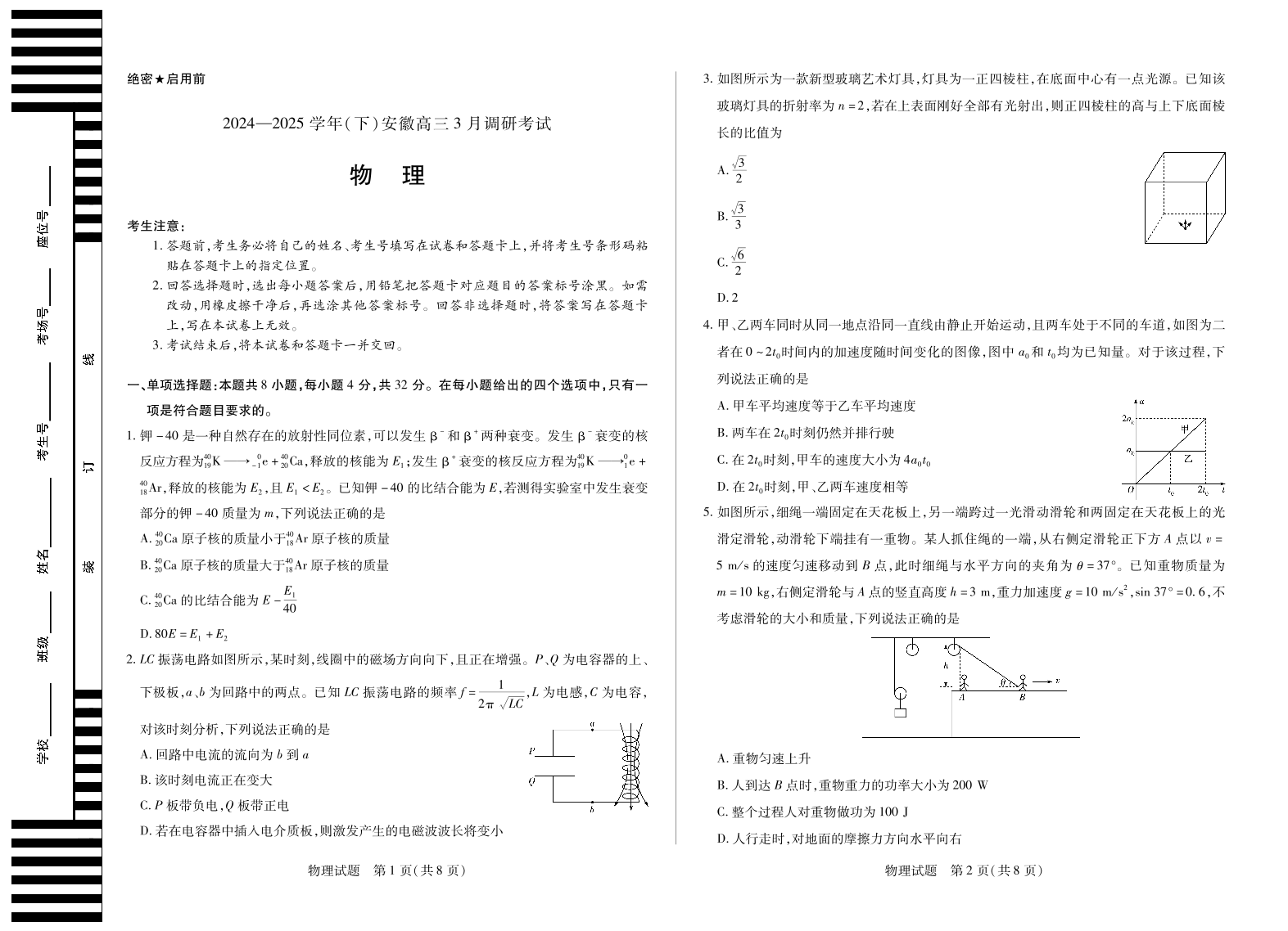 安徽省天一大联考2024-2025学年(下)高三3月调研考试 物理.pdf
