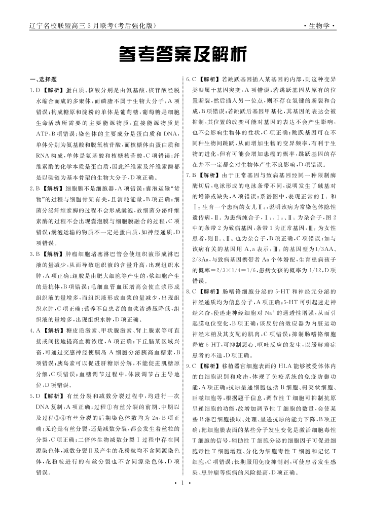 生物2025年辽宁高三3月联考答案(考后强化版).pdf