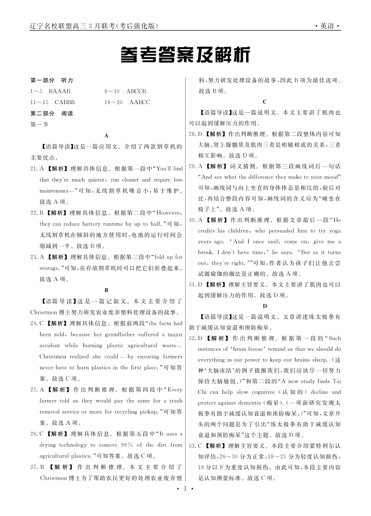 英语2025年辽宁高三3月联考答案(考后强化版).pdf