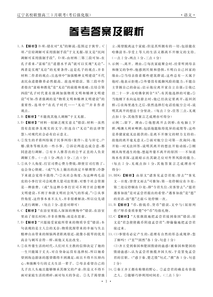 语文2025年辽宁高三3月联考答案(考后强化版).pdf