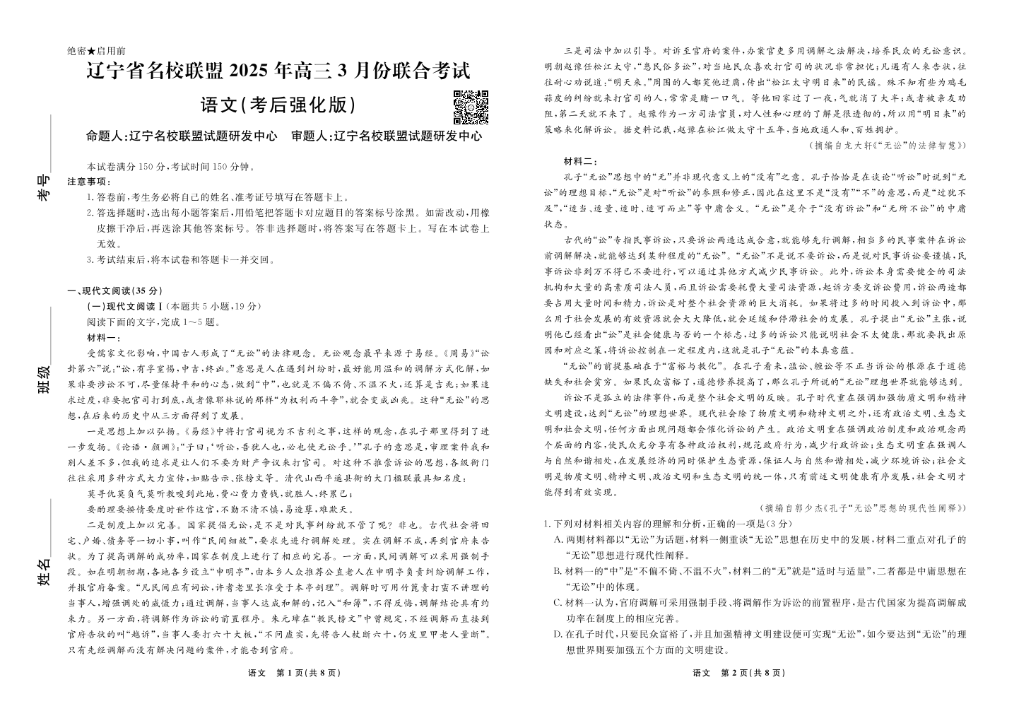 语文2025年辽宁高三3月联考正文(考后强化版).pdf