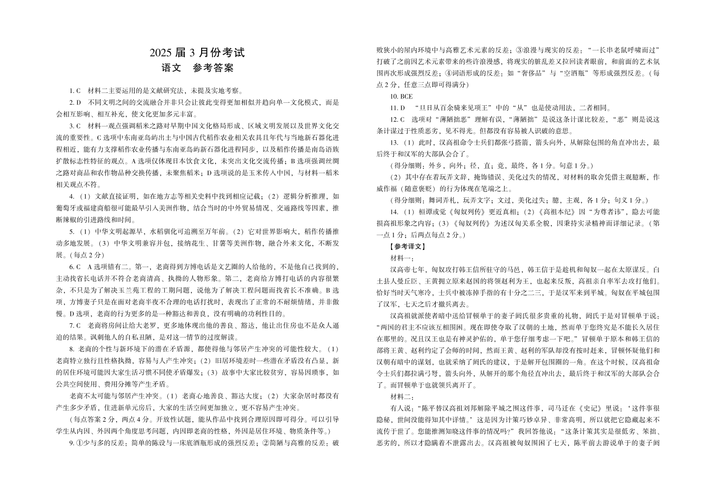 陕西省菁师联盟2025届高三3月联考 语文答案.pdf