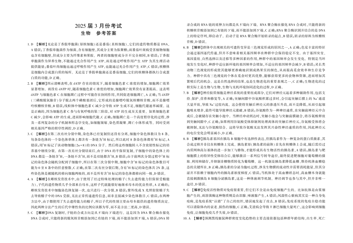 陕西省菁师联盟2025届高三3月联考 生物答案.pdf