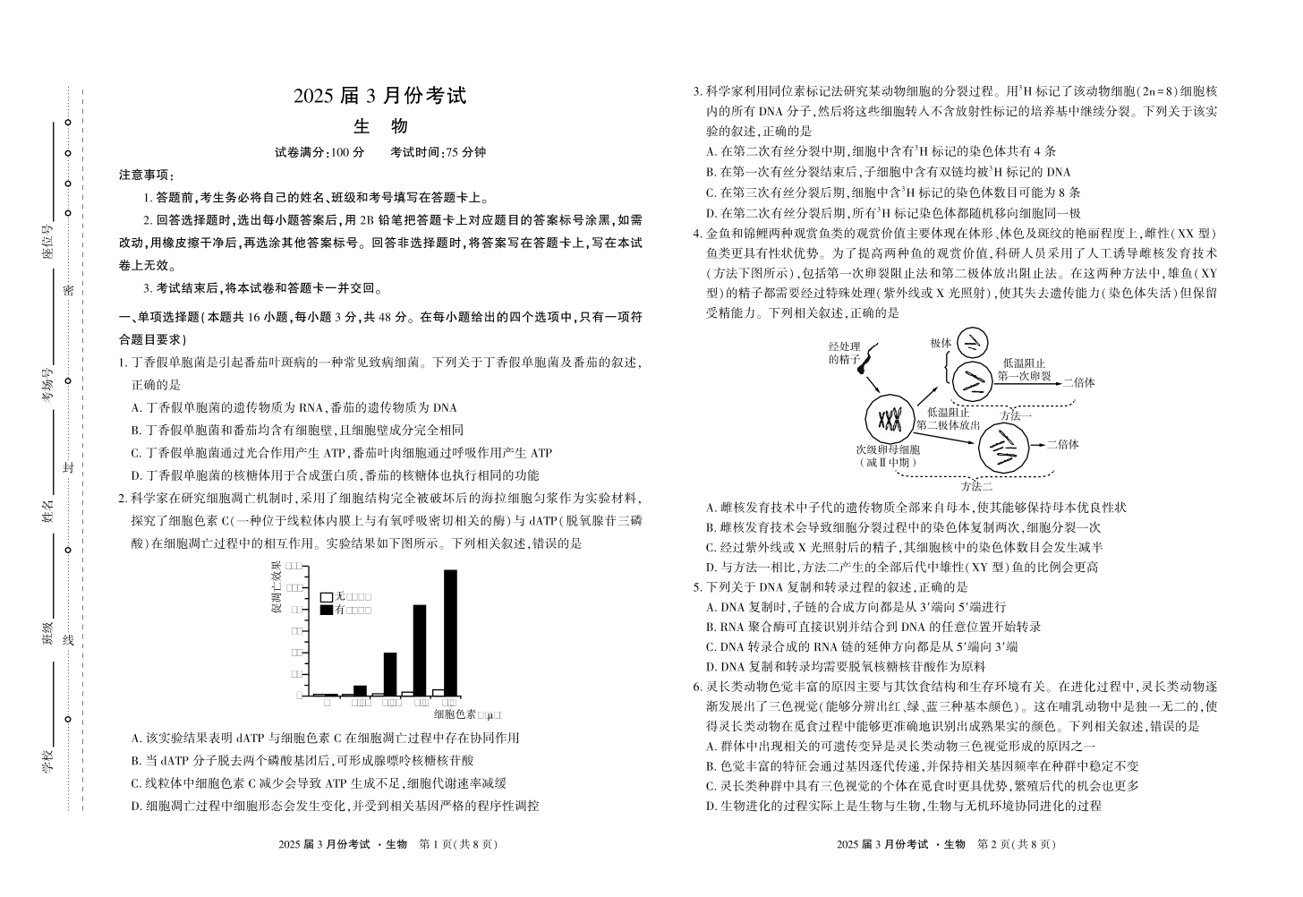 陕西省菁师联盟2025届高三3月联考 生物.pdf