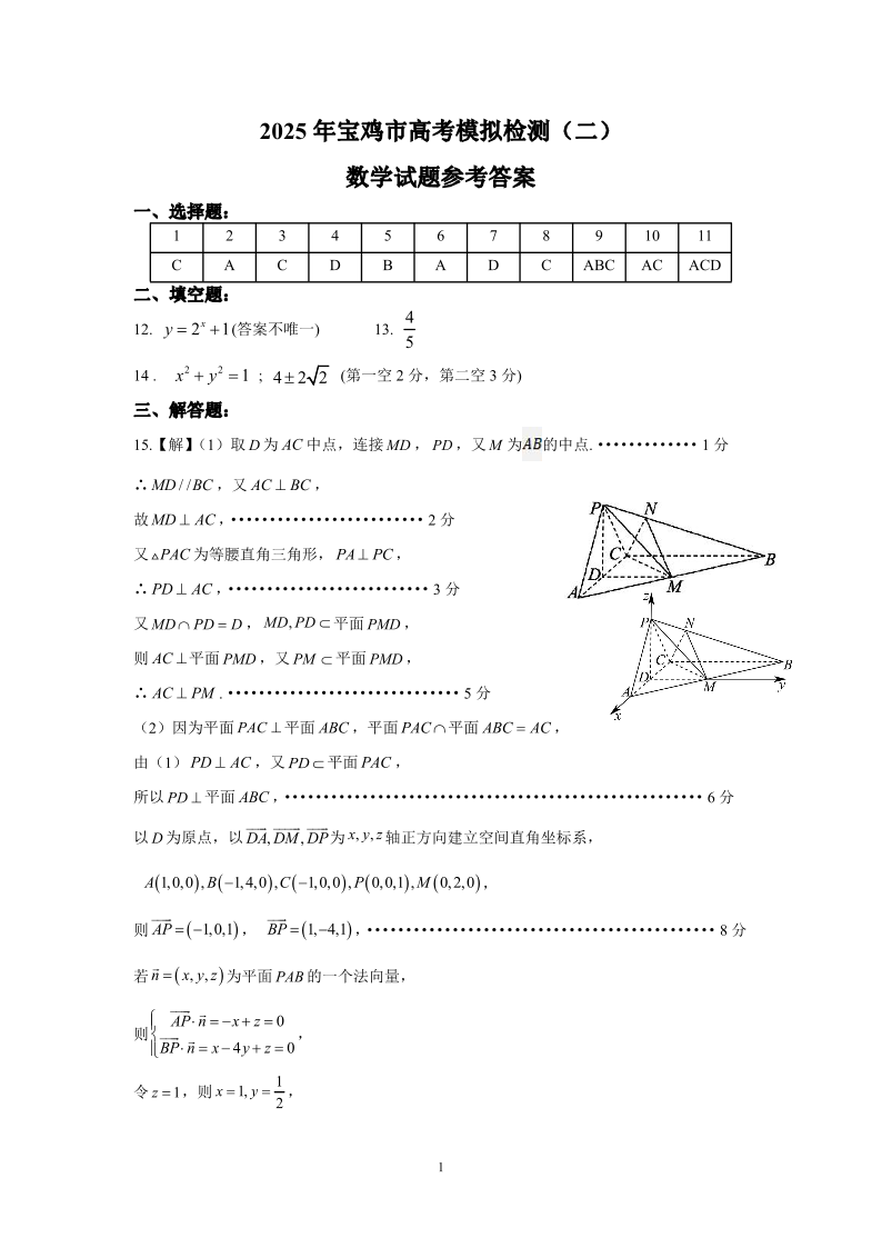 陕西省宝鸡市2025年高考模拟检测试题(二)数学答案.pdf