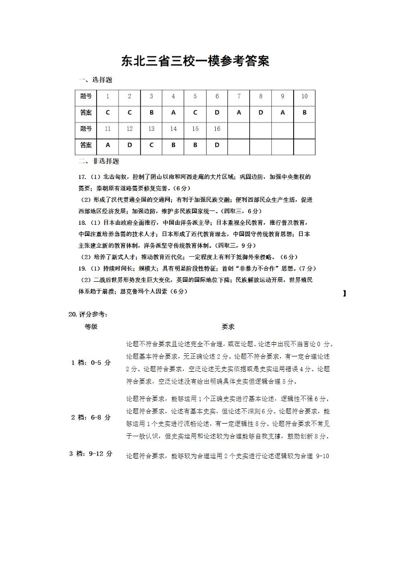 东北三省三校2025年高三第一次联合模拟考试 历史答案.pdf