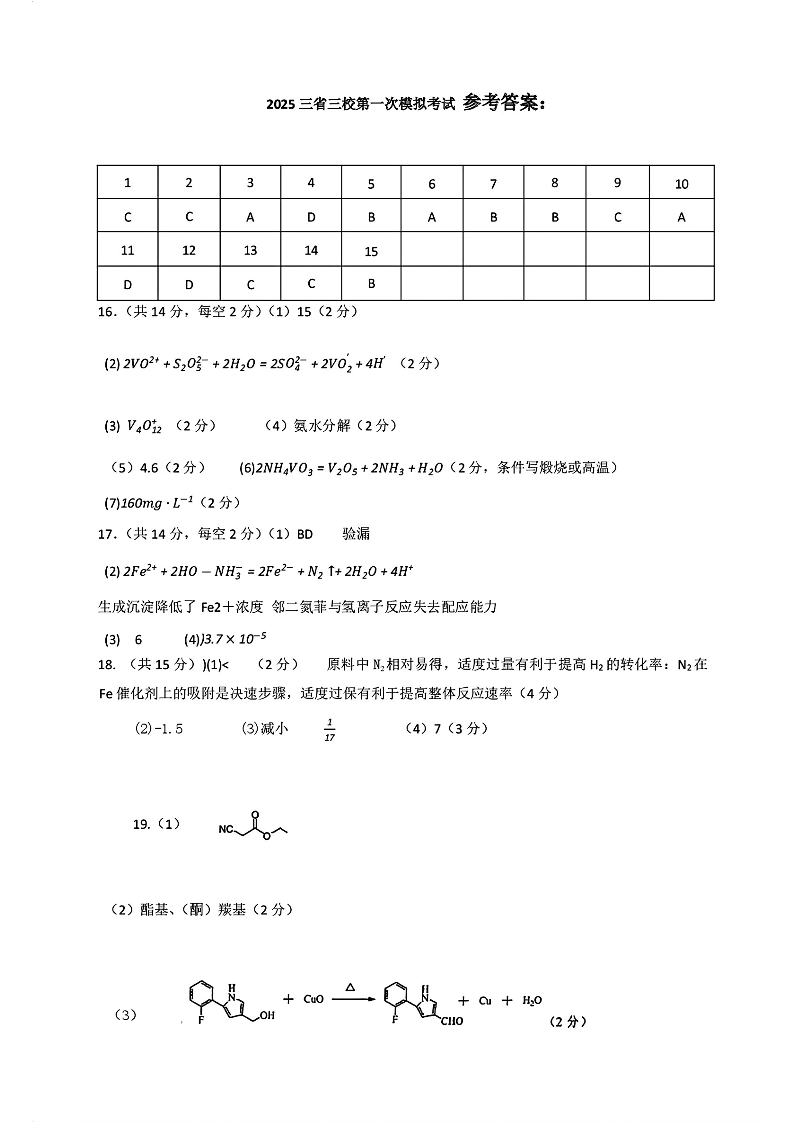 东北三省三校2025年高三第一次联合模拟考试 化学答案.pdf