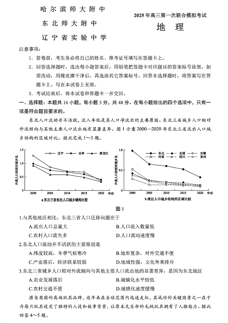 东北三省三校2025年高三第一次联合模拟考试 地理.pdf