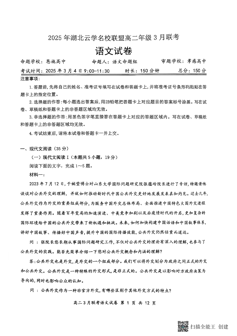 2025年湖北云学名校联盟高二年级3月联考 语文.pdf