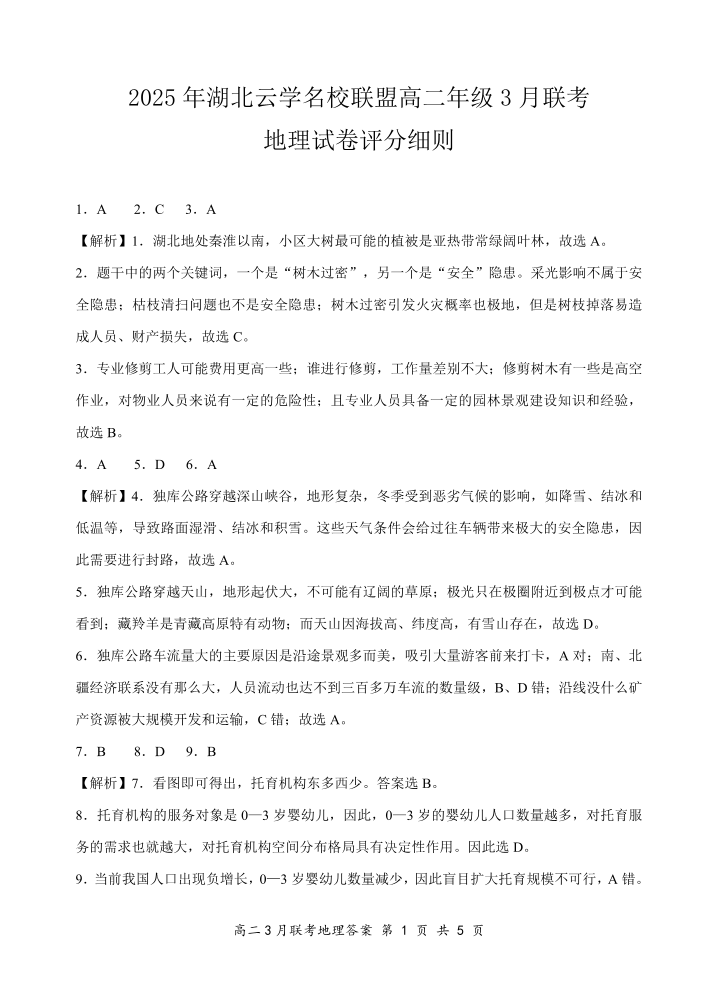 2025年湖北云学名校联盟高二年级3月联考 地理参考答案.pdf