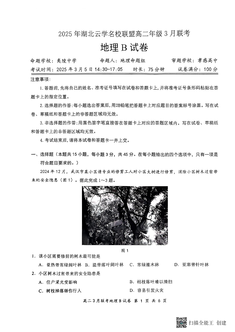 2025年湖北云学名校联盟高二年级3月联考 地理.pdf