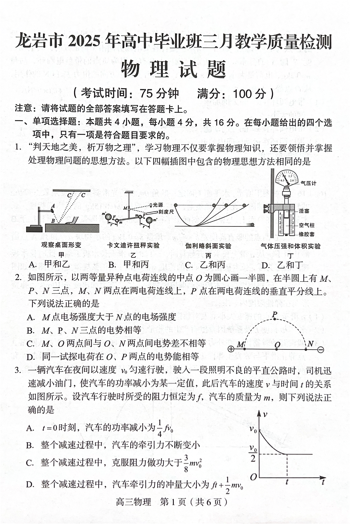 福建省龙岩市2025年高中毕业班三月教学质量检测 物理.pdf