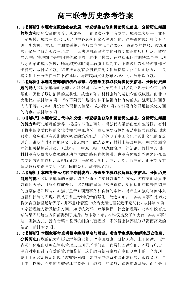 安顺市2025届高三年级3月联考 历史答案.pdf