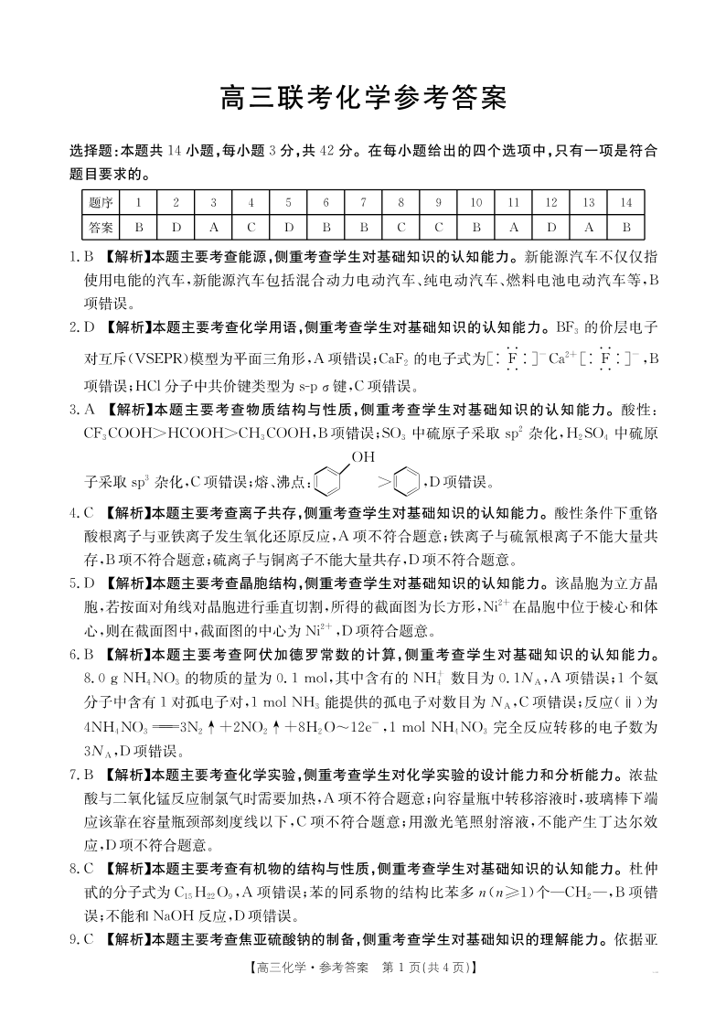 安顺市2025届高三年级3月联考 化学答案.pdf