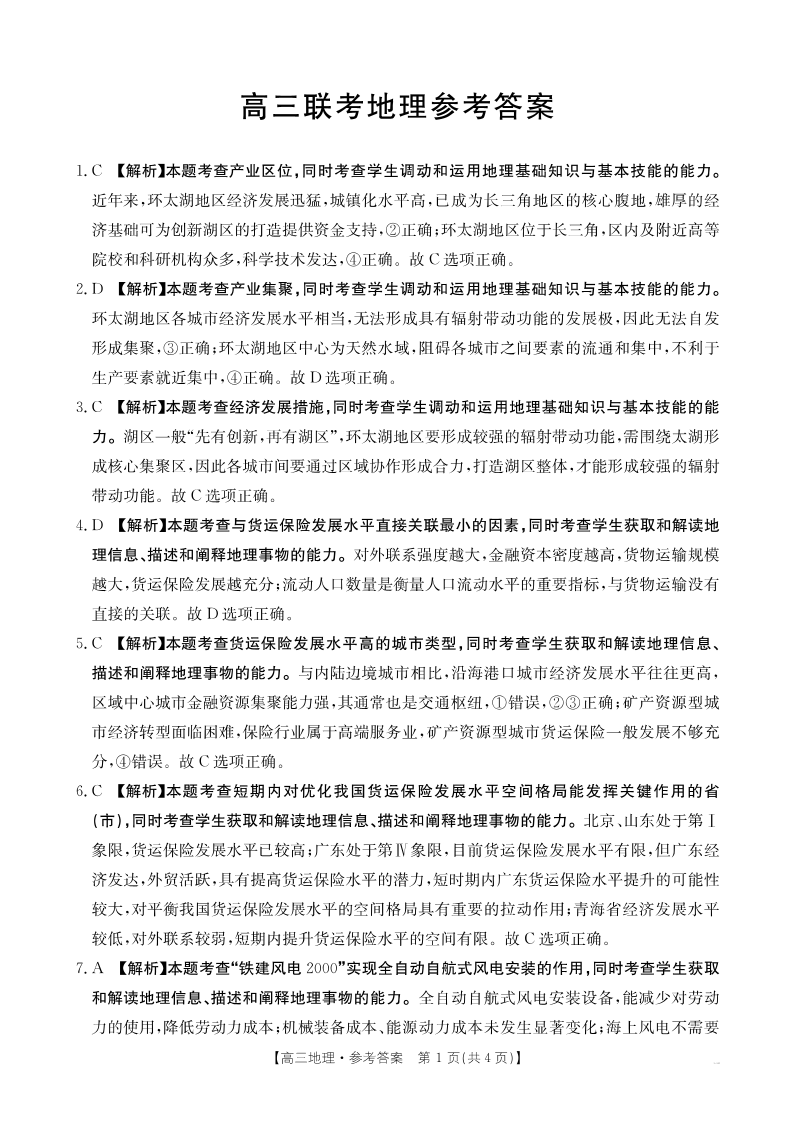 安顺市2025届高三年级3月联考 地理答案.pdf