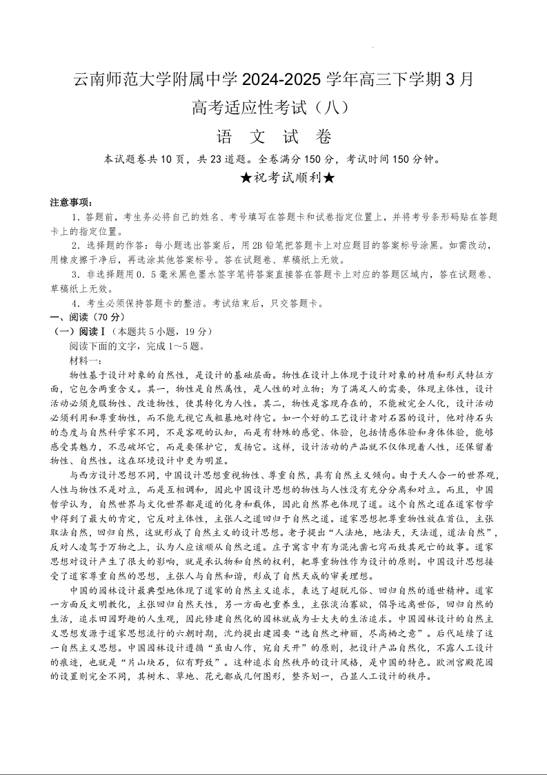 云南师大附中2025届高考适应性月考卷(八)语文.docx