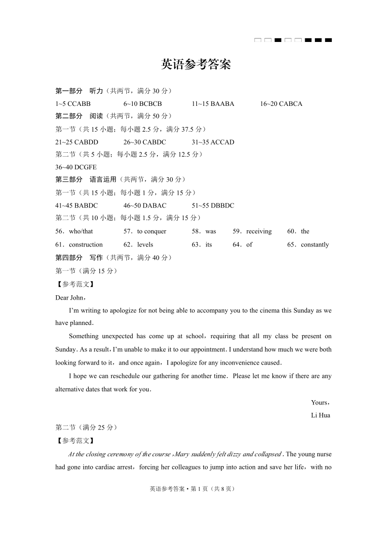 云南师大附中2025届高考适应性月考卷(八)英语答案.pdf
