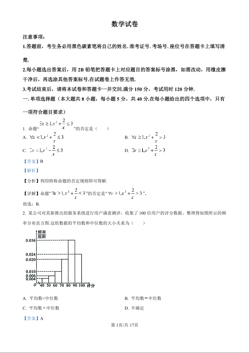 云南师大附中2025届高考适应性月考卷(八)数学答案.docx