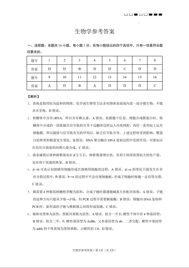 云南师大附中2025届高考适应性月考卷(八)生物答案.docx