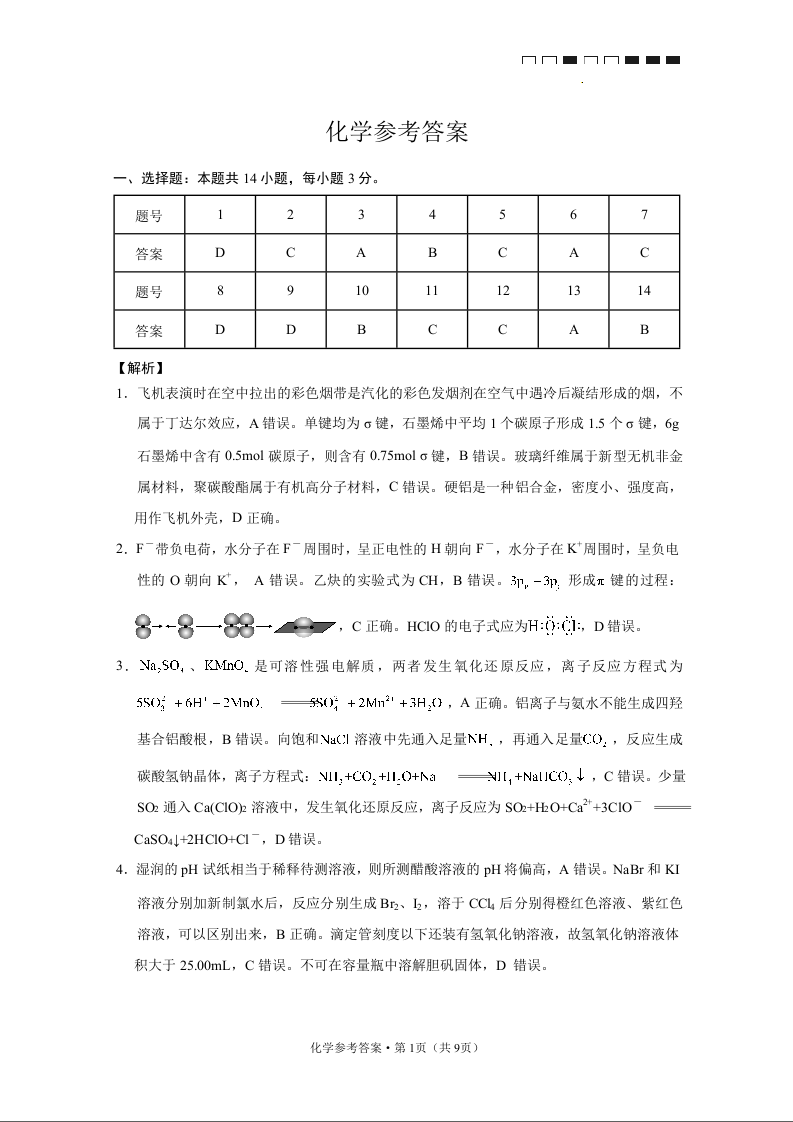云南师大附中2025届高考适应性月考卷(八)化学答案.docx