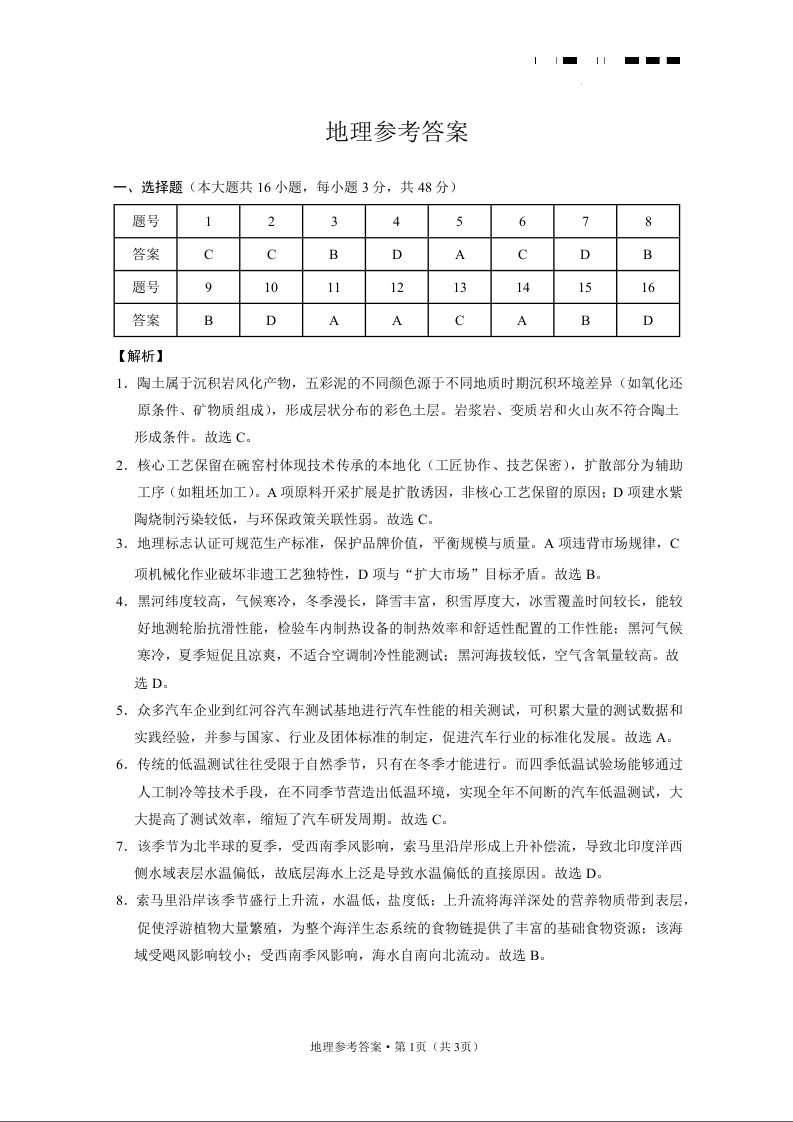 云南师大附中2025届高考适应性月考卷(八)地理答案.docx