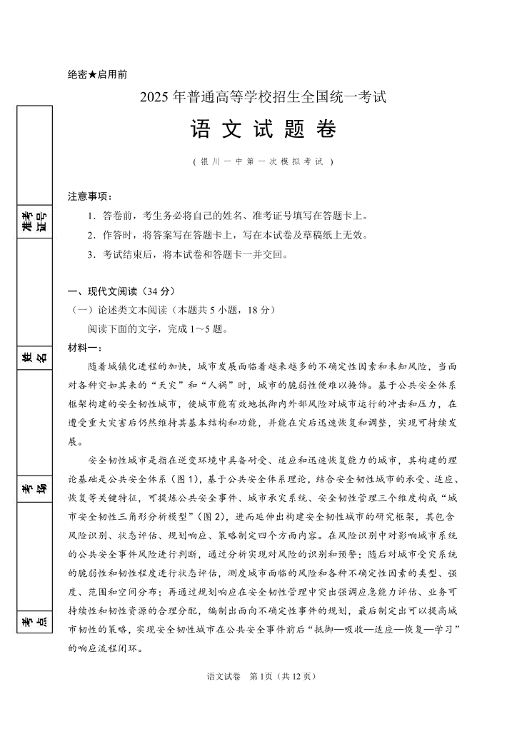 宁夏银川一中2025届高三下学期第一次模拟考试 语文.pdf