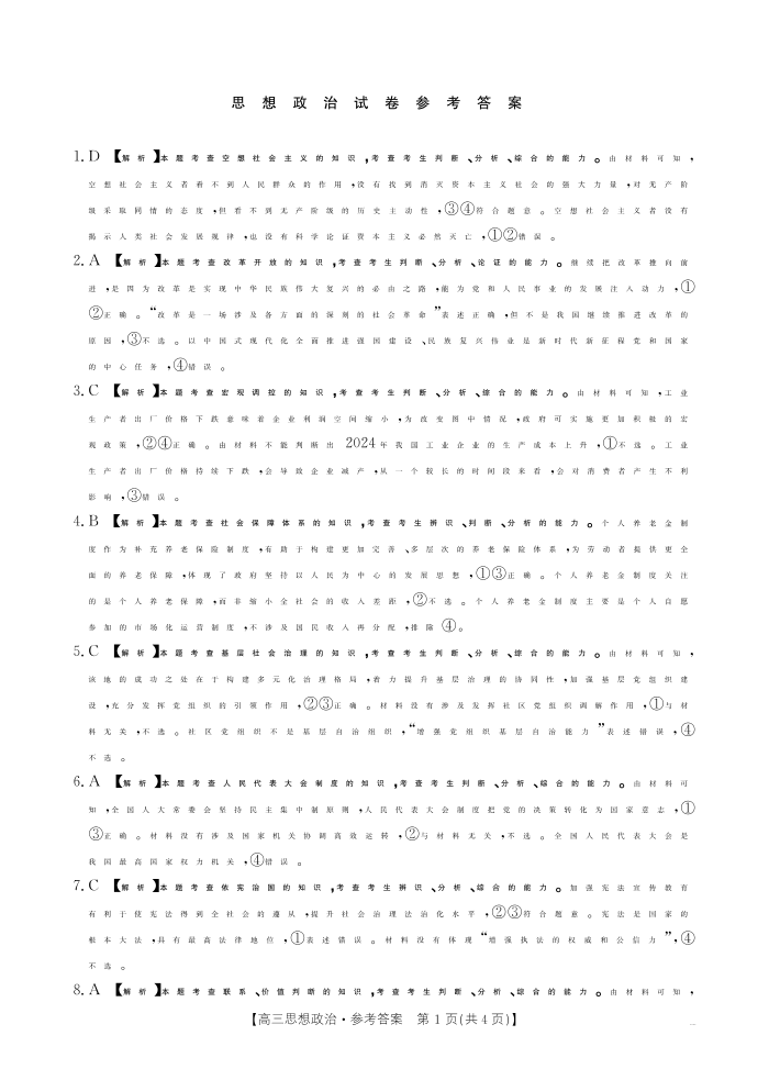 辽宁省抚顺市六校协作体2025届高三下学期期初检测 政治答案.pdf