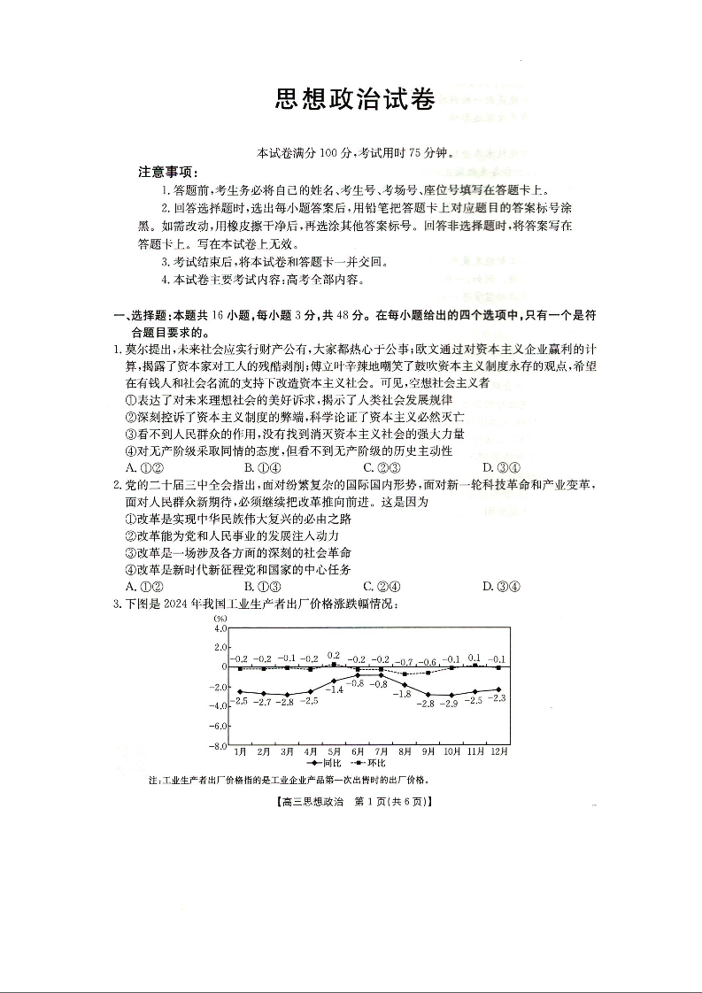 辽宁省抚顺市六校协作体2025届高三下学期期初检测 政治.docx