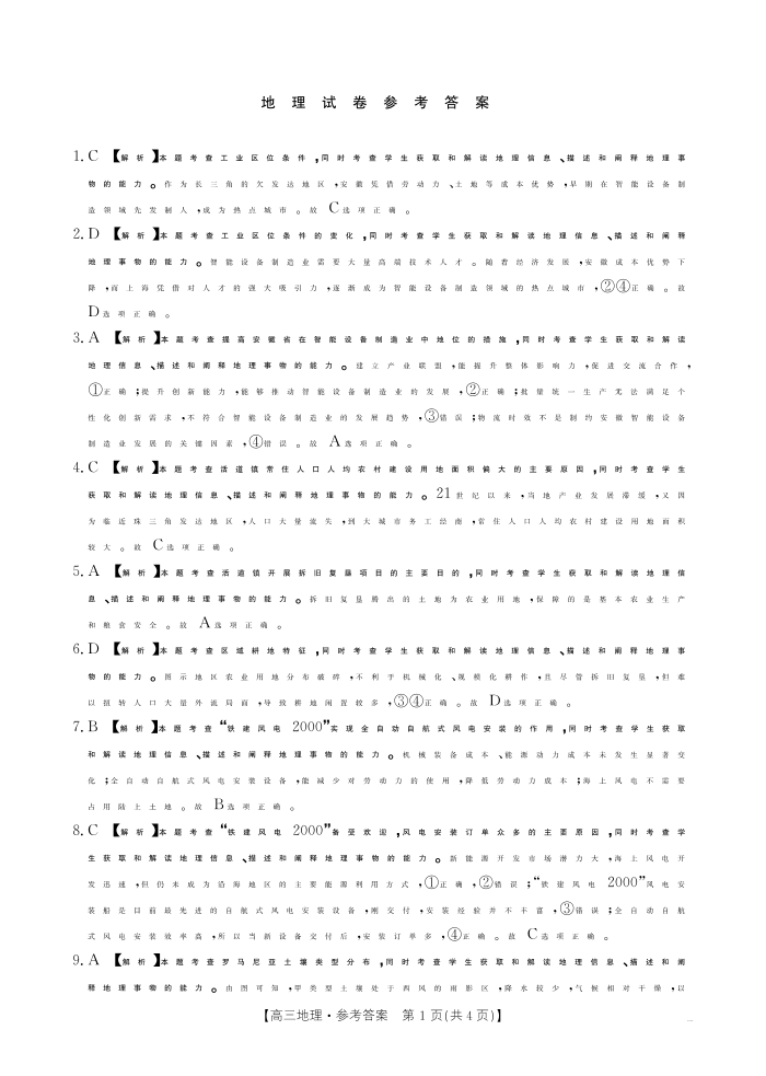 辽宁省抚顺市六校协作体2025届高三下学期期初检测 地理答案.pdf