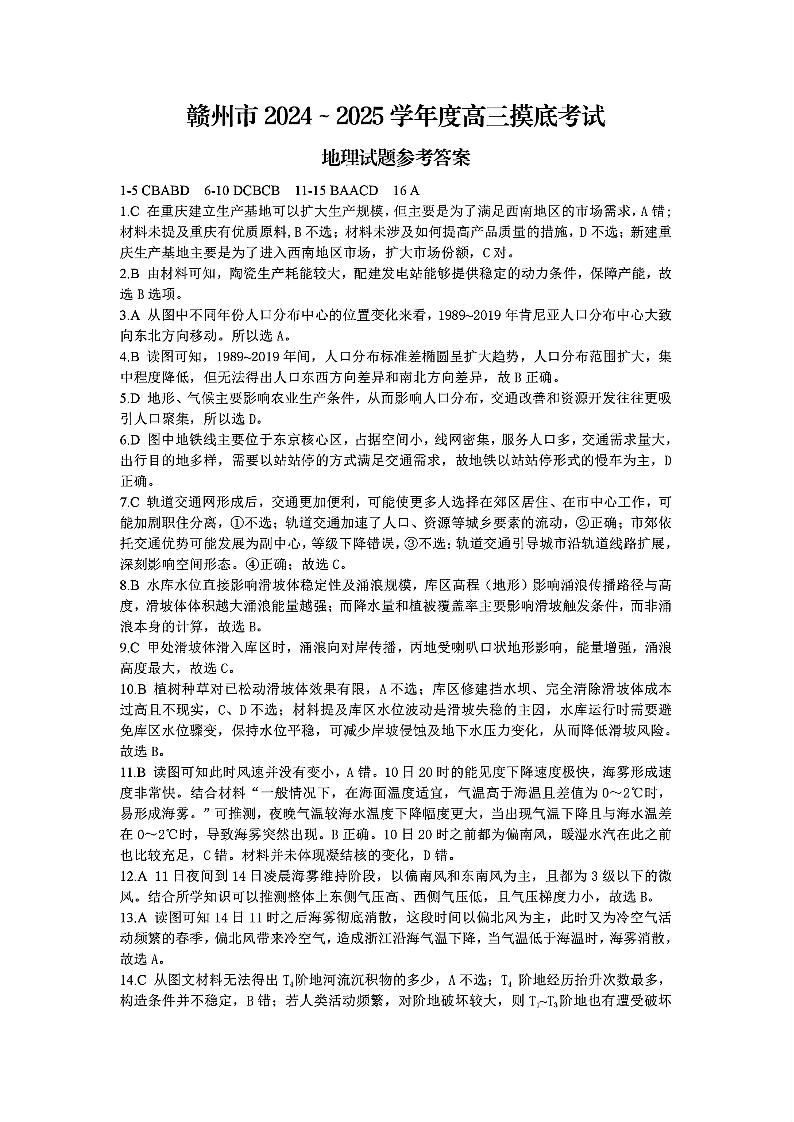 江西省赣州市2025年高三年级3月摸底考试 地理答案.pdf