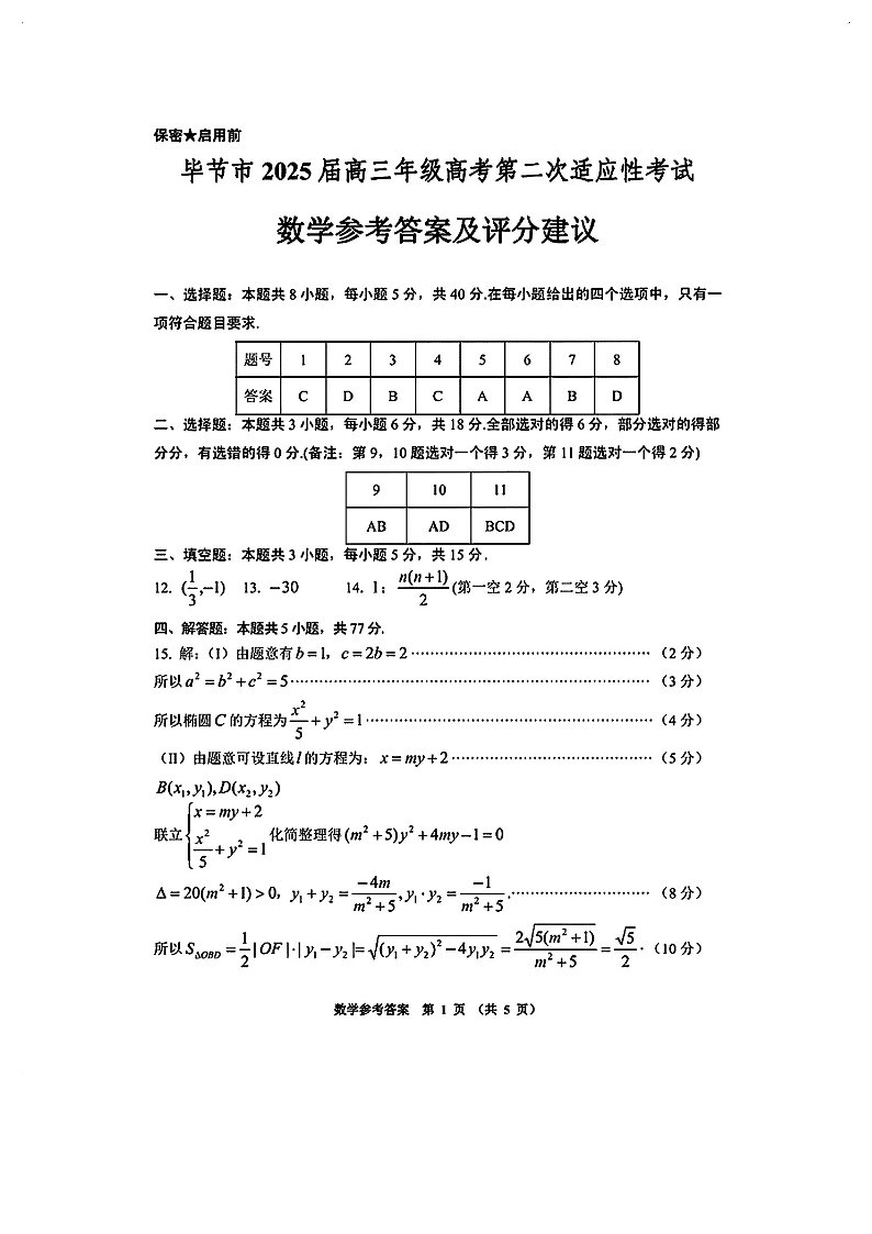 毕节市2025届高三年级高考第二次适应性考试 数学答案.pdf