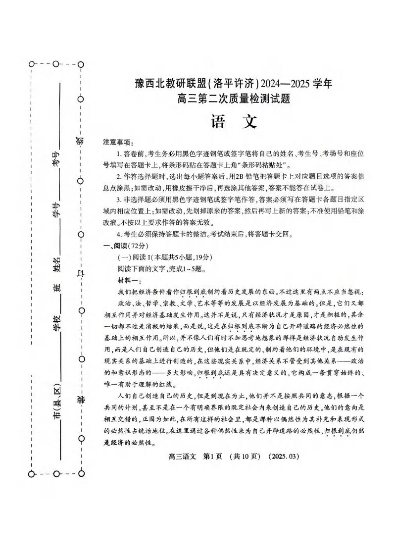 河南省豫西北教研联盟(洛平许济)2025届高三第二次质量检测 语文.pdf
