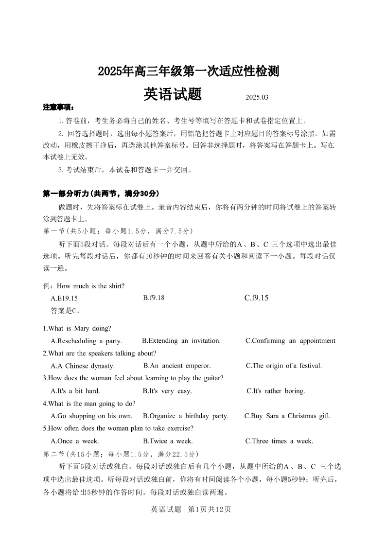 山东省青岛市2025年高三年级第一次适应性检测 英语.pdf