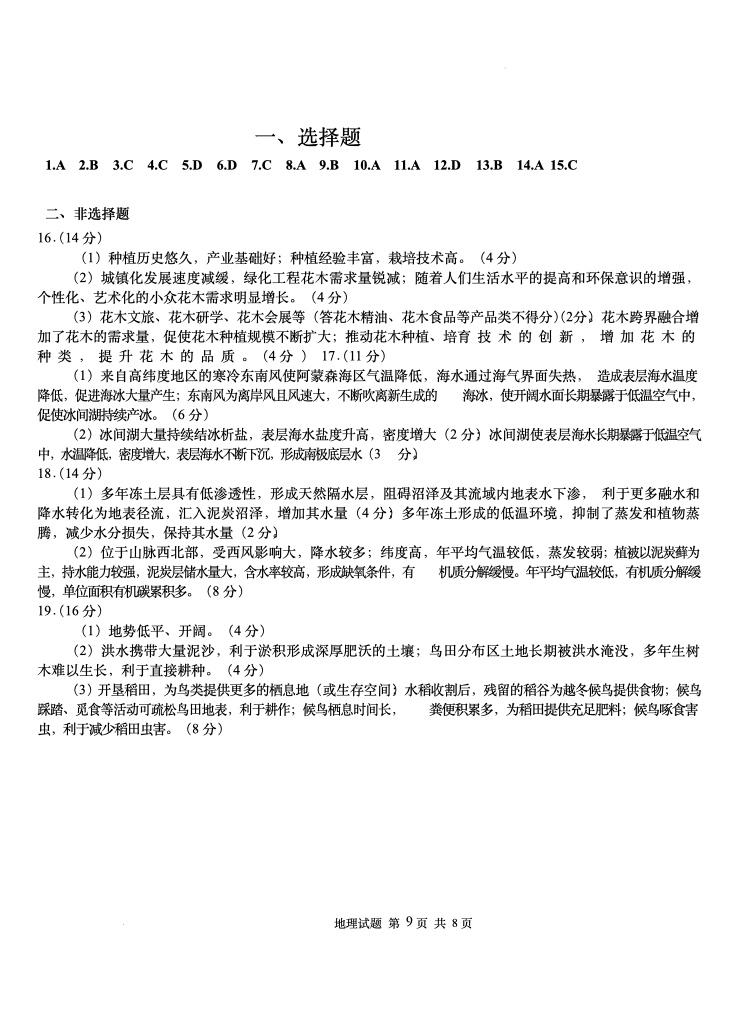 山东省青岛市2025年高三年级第一次适应性检测 地理答案.pdf