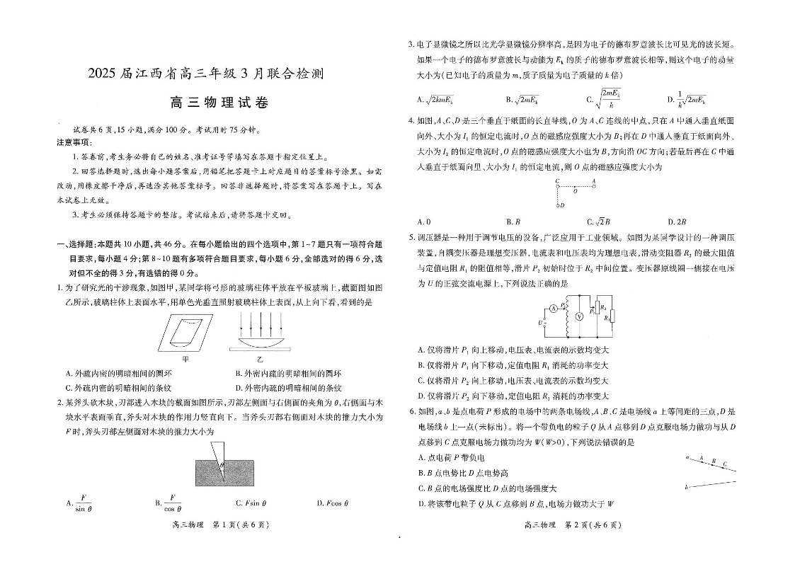 江西省上进联考2024-2025学年高三下学期3月联合检测 物理(含答案).pdf