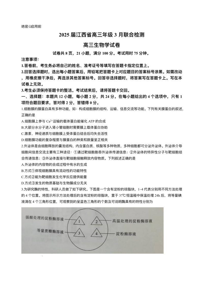 江西省上进联考2024-2025学年高三下学期3月联合检测 生物(含答案).pdf