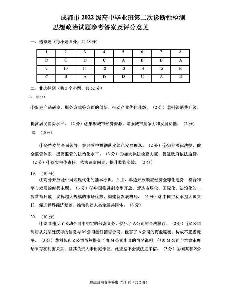成都市2022级高中毕业班第二次诊断性检测 政治答案.pdf