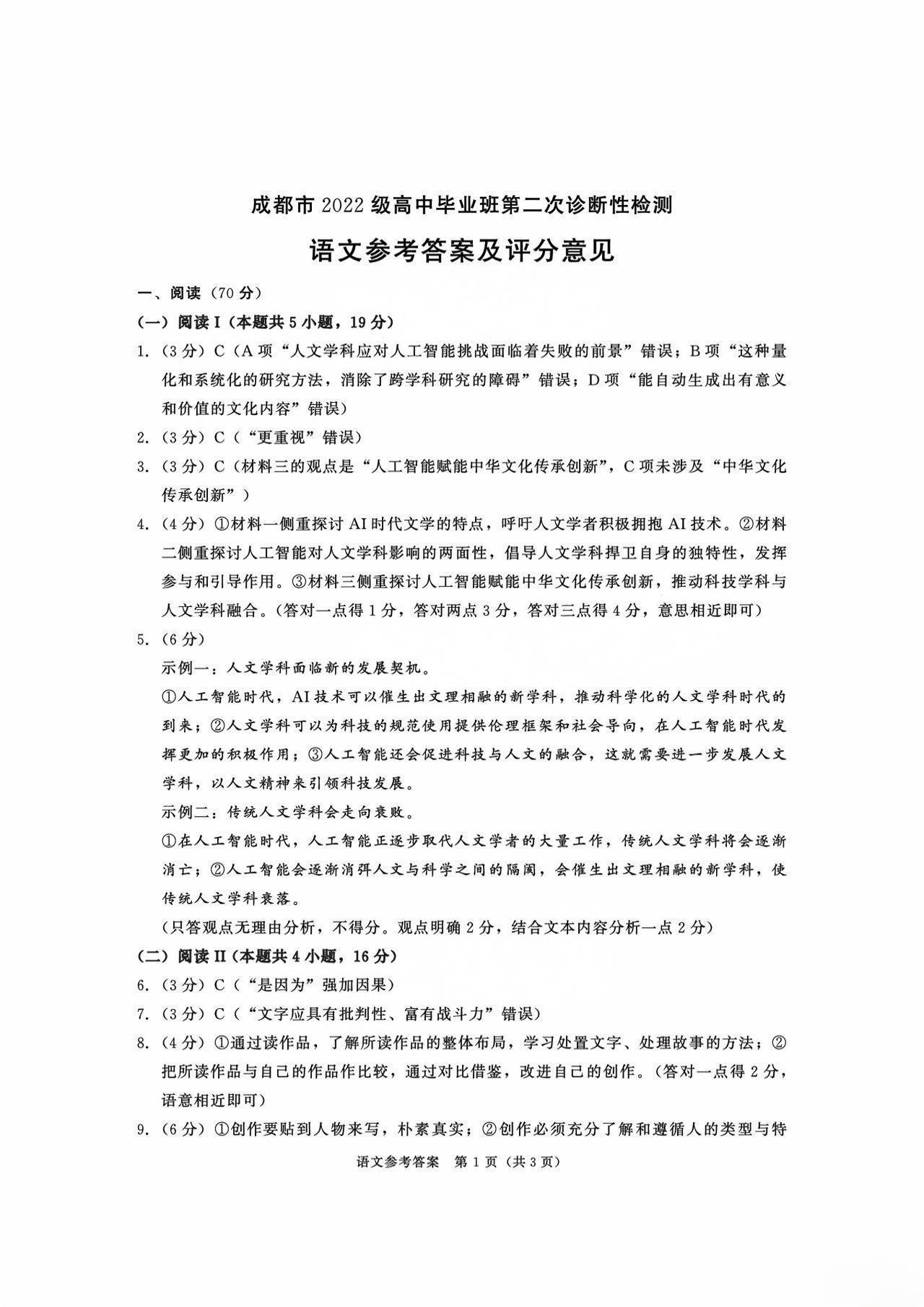 成都市2022级高中毕业班第二次诊断性检测 语文答案.pdf