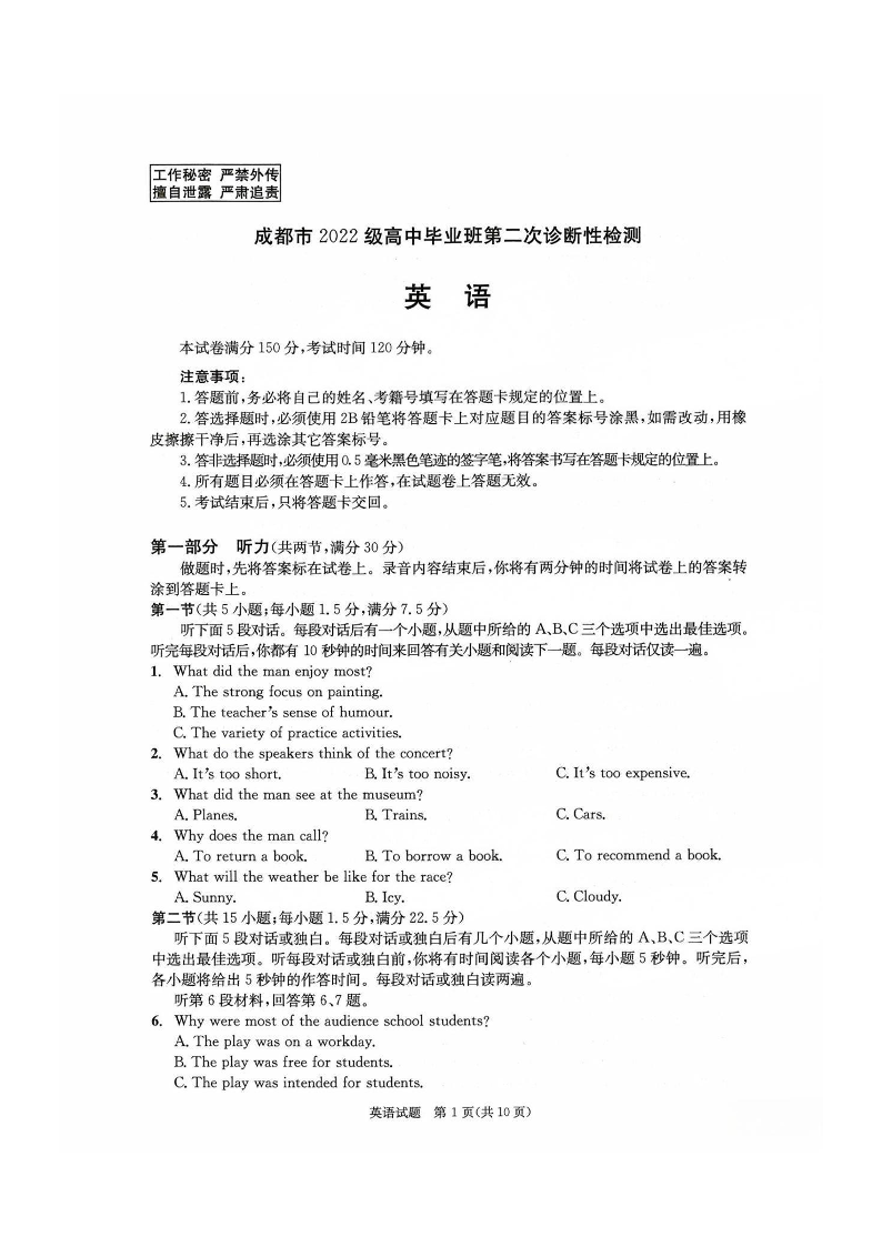 成都市2022级高中毕业班第二次诊断性检测 英语.pdf