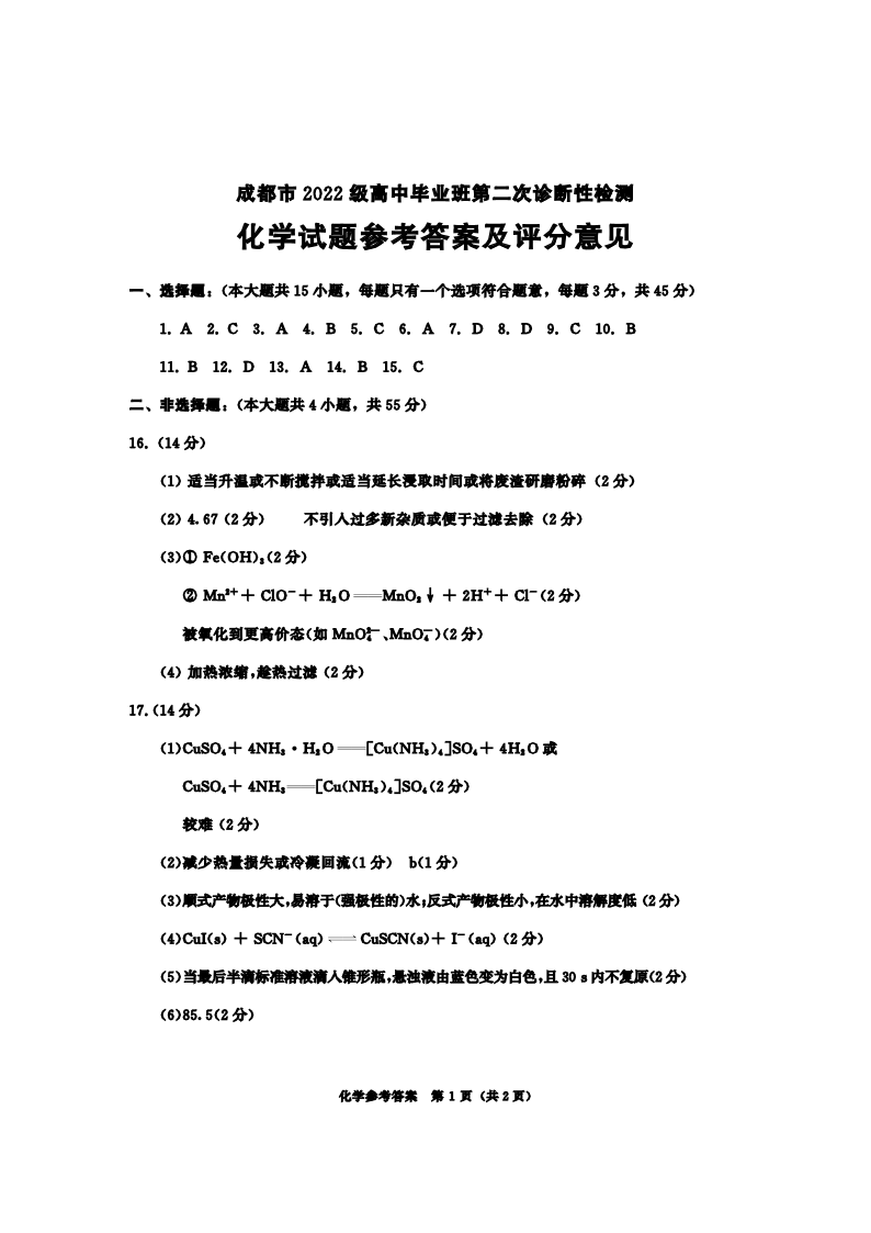 成都市2022级高中毕业班第二次诊断性检测 化学答案.pdf