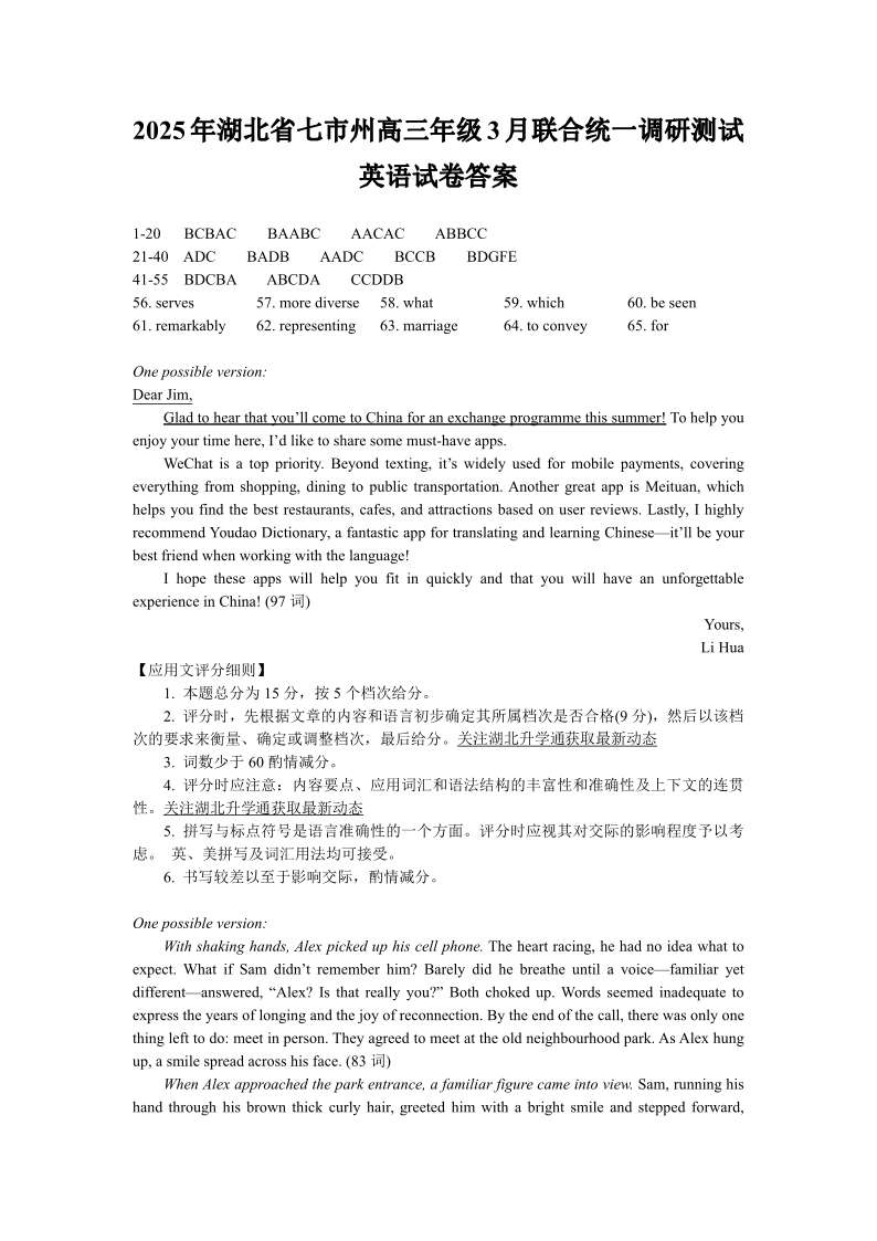 2025年湖北省七市州高三年级3月联合统一调研测试 英语答案.pdf