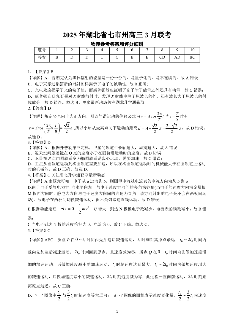 2025年湖北省七市州高三年级3月联合统一调研测试 物理答案.pdf