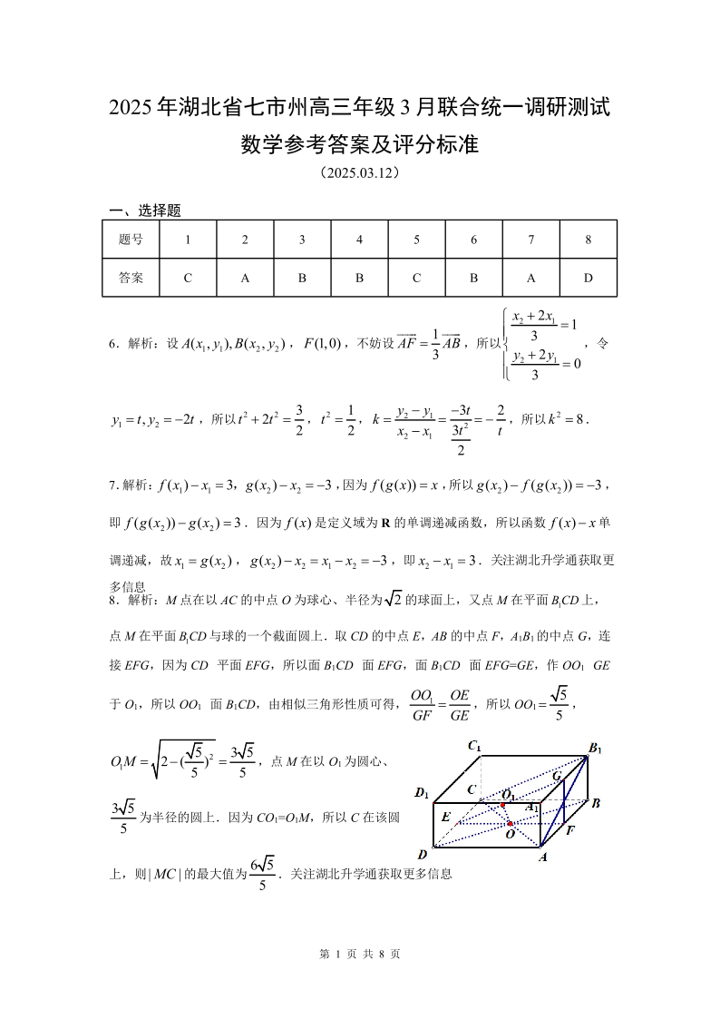 2025年湖北省七市州高三年级3月联合统一调研测试 数学答案.pdf