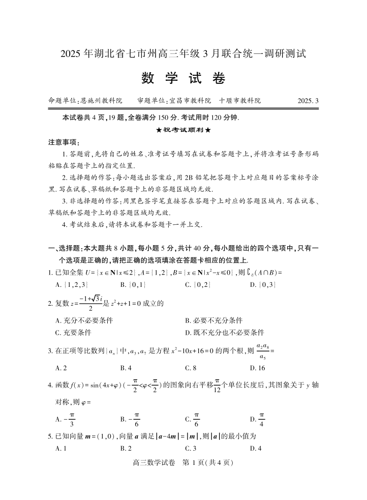 2025年湖北省七市州高三年级3月联合统一调研测试 数学.pdf